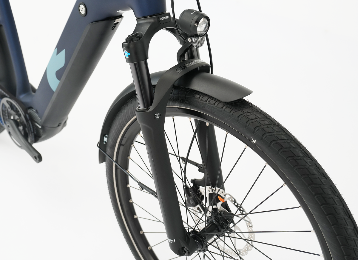 The P101 motor with 100 Nm and the huge 800 Wh battery ensure you arrive relaxed and without charging stops. Add an 80 mm suspension fork and wide Schwalbe tires as comfort boosters, bright lighting for night rides, and the sturdy MIK HD carrier approved for child seats. Available as a high-step or low-step frame in three frame sizes in striking Dark Blue with a metallic effect.